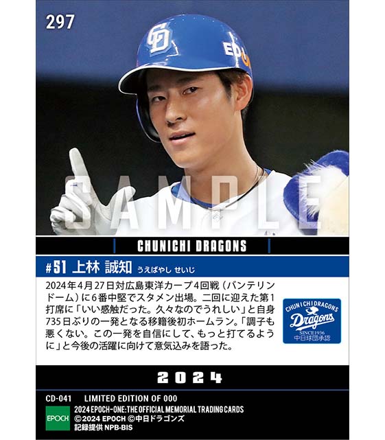 公式【上林誠知】自身735日ぶりの一発となる移籍後初アーチ(24.4.27) のカードを買うならエポックワン!税込・送料無料!