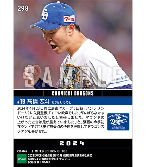 公式【髙橋宏斗】今季初登板で7回無失点の快投を披露(24.4.28) のカードを買うならエポックワン!税込・送料無料!