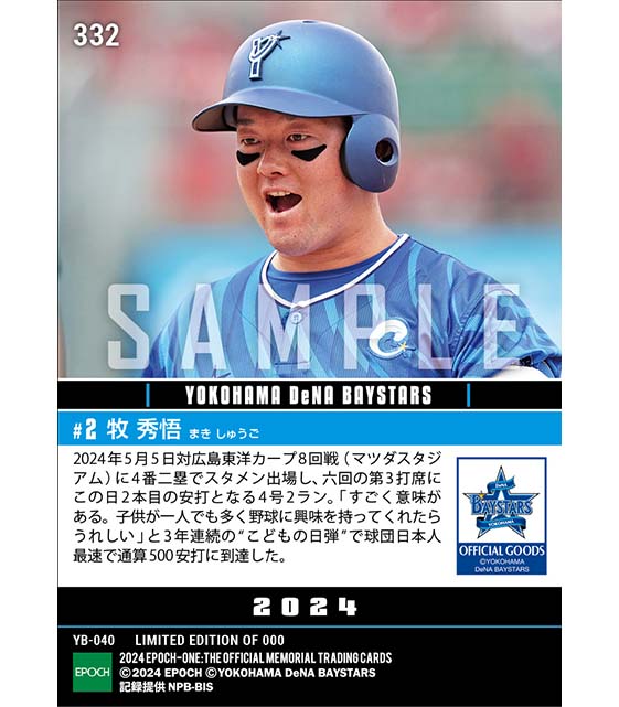 公式【牧 秀悟】球団日本人最速で通算500安打達成(24.5.5) のカードを買うならエポックワン!税込・送料無料!