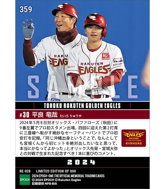 公式【平良竜哉】絶妙セーフティーバントでプロ初安打(24.5.8) のカードを買うならエポックワン!税込・送料無料!