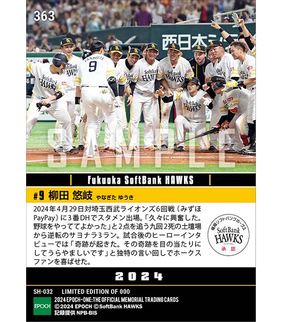 公式【柳田悠岐】福岡移転通算2500勝を飾る逆転サヨナラ3ラン(24.4.29) のカードを買うならエポックワン!税込・送料無料!