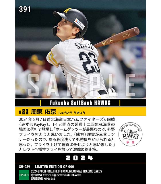 公式【周東佑京】延長十二回代打サヨナラ犠飛(24.5.7) のカードを買うならエポックワン!税込・送料無料!
