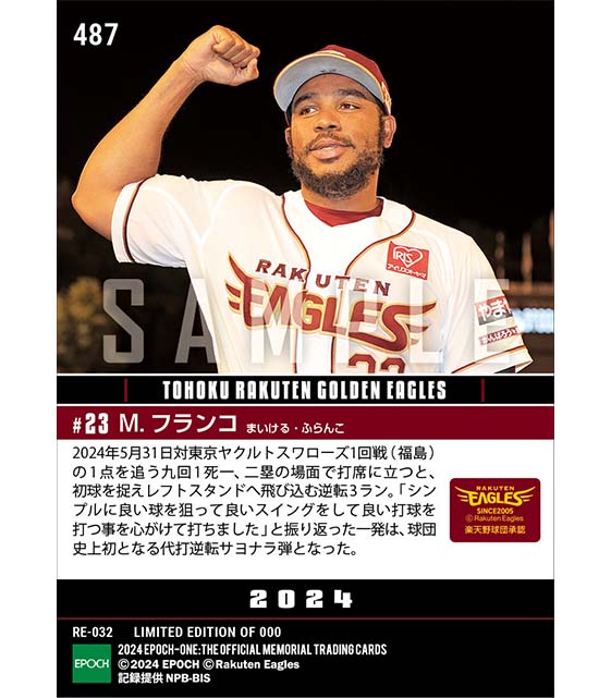 公式【フランコ】球団史上初代打逆転サヨナラ弾(24.5.31) のカードを買うならエポックワン!税込・送料無料!
