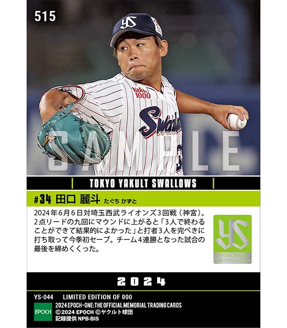 公式【田口麗斗】三者凡退締めで今季初セーブ(24.6.6) のカードを買うならエポックワン!税込・送料無料!