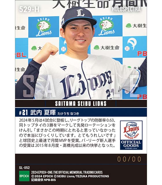 公式※ホロスペクトラRC【武内夏暉】2024年度 大樹生命月間MVP賞 パシフィック・リーグ5月度投手部門(24.6.11) のカードを買うならエポックワン!税込・送料無料!
