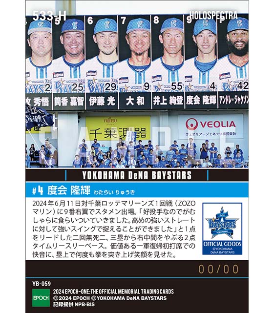公式※ホロスペクトラRC【度会隆輝】復帰1打席目のタイムリースリーベース(24.6.11) のカードを買うならエポックワン!税込・送料無料!