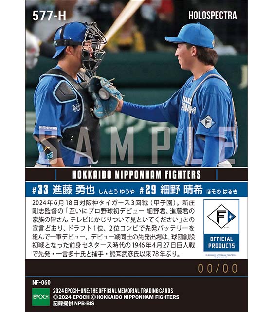 公式※ホロスペクトラ RC【細野晴希/進藤勇也】球団78年ぶりの新人デビュー戦先発バッテリー(24.6.18) のカードを買うならエポックワン!税込・送料無料!