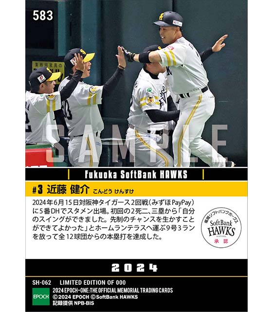 公式【近藤健介】全12球団制覇弾(24.6.15) のカードを買うならエポックワン!税込・送料無料!