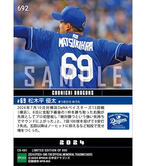 公式【松木平優太】プロ初登板初先発(24.7.10) のカードを買うならエポックワン!税込・送料無料!