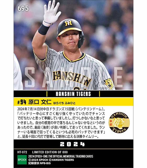 公式【原口文仁】必死のパッチで代打決勝タイムリー(24.7.14) のカードを買うならエポックワン!税込・送料無料!