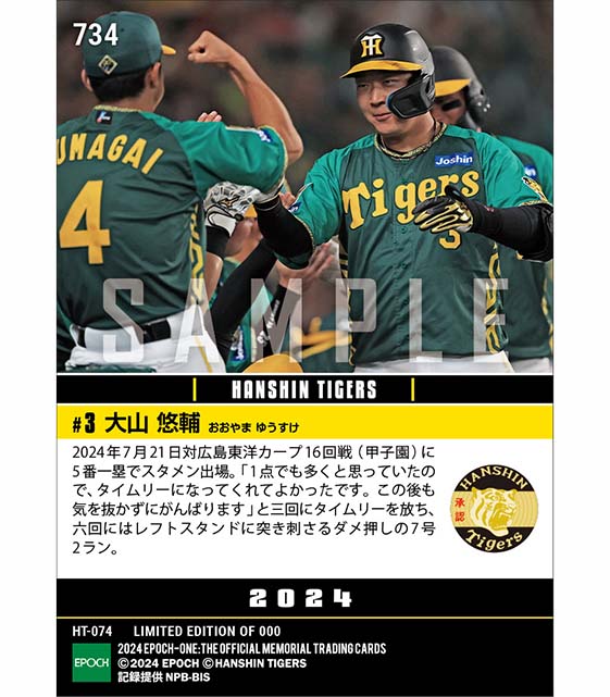 公式【大山悠輔】豪快弾含む3打点で12得点を奪った打線をけん引(24.7.21) のカードを買うならエポックワン!税込・送料無料!