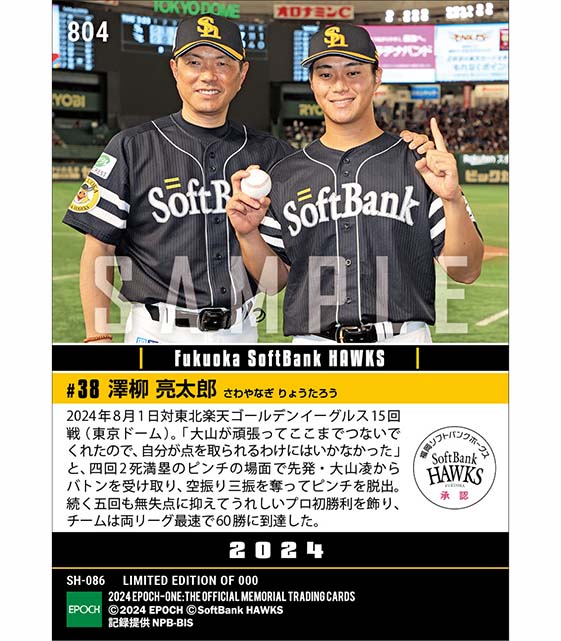 公式RC【澤柳亮太郎】ピンチを切り抜けプロ初勝利(24.8.1) のカードを買うならエポックワン!税込・送料無料!