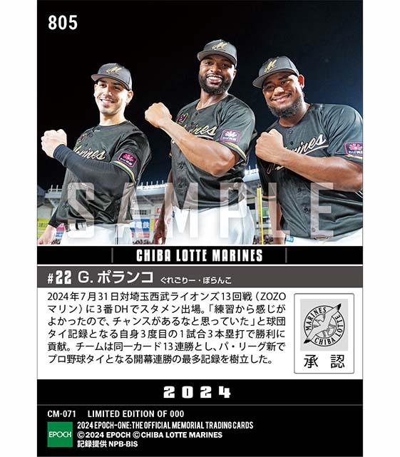 公式【ポランコ】自身3度目の1試合3発でチームはパ・リーグ新の同一カード開幕13連勝(24.7.31) のカードを買うならエポックワン!税込・送料無料!