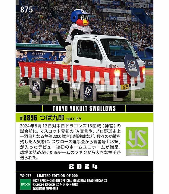 公式【つば九郎】デビュー後初のホームユニフォーム贈呈「つば九郎DAY2024」(24.8.12) のカードを買うならエポックワン!税込・送料無料!