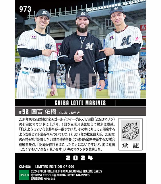 公式【国吉佑樹】球団新記録となる22試合連続無失点(24.9.5) のカードを買うならエポックワン!税込・送料無料!