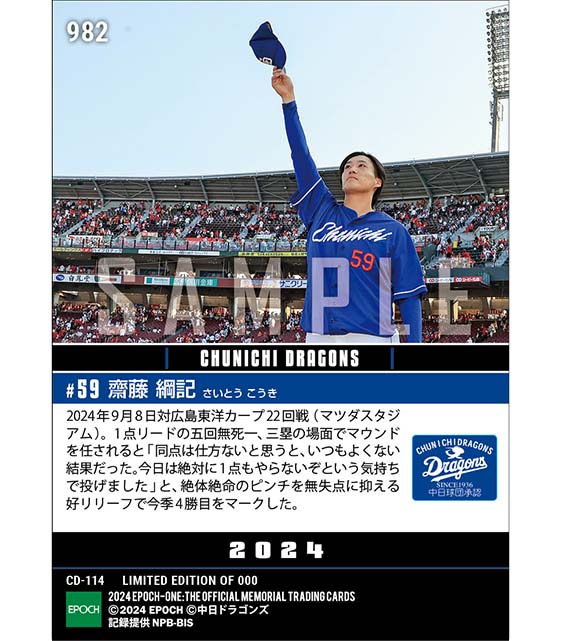 公式【齋藤綱記】ピンチを救う好リリーフで勝利投手(24.9.8) のカードを買うならエポックワン!税込・送料無料!