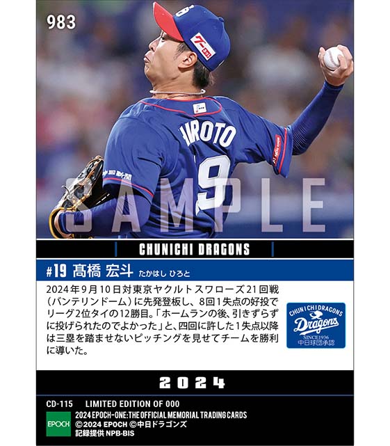公式【髙橋宏斗】安定の投球でリーグ2位に並ぶ今季12勝目(24.9.10) のカードを買うならエポックワン!税込・送料無料!