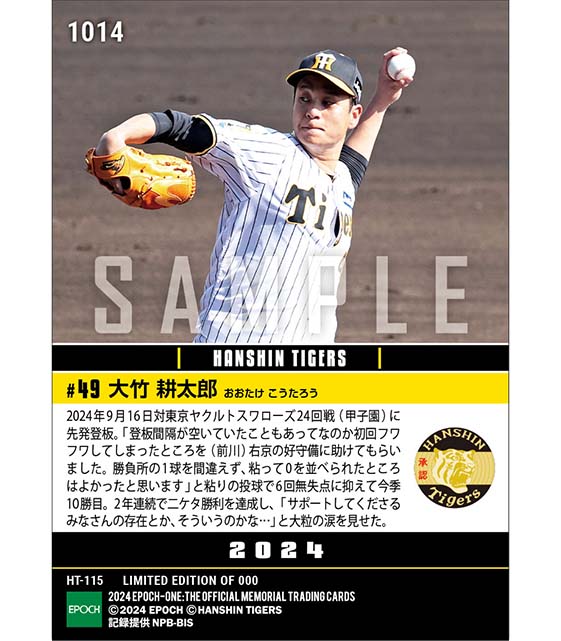 公式【大竹耕太郎】涙の2年連続二ケタ勝利(24.9.16) のカードを買うならエポックワン!税込・送料無料!