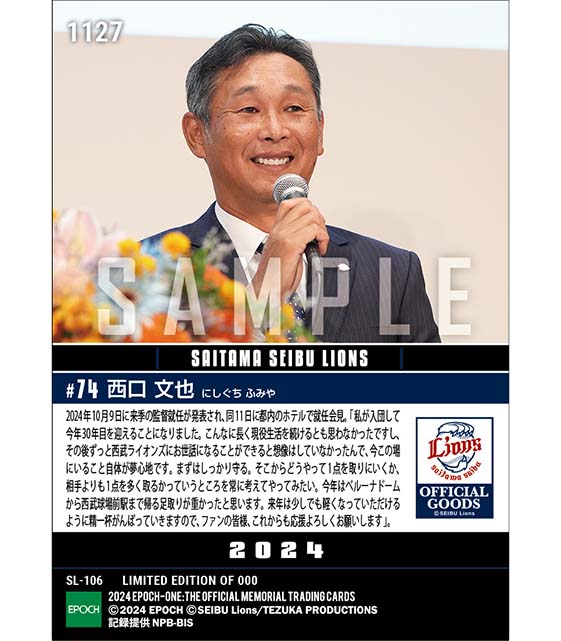 公式【西口文也】監督就任会見「新しい常勝軍団をつくっていく」(24.10.11) のカードを買うならエポックワン!税込・送料無料!
