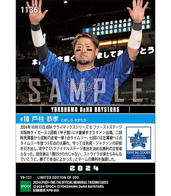 公式【戸柱恭孝】超満員の甲子園で5打点の大暴れ「2024 JERA クライマックスシリーズ セ」(24.10.13) のカードを買うならエポックワン!税込・送料無料!