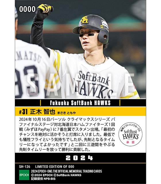 公式【正木智也】CSファイナル開幕戦で値千金先制打「2024 パーソル クライマックスシリーズ パ」(24.10.16) のカードを買うならエポックワン!税込・送料無料!