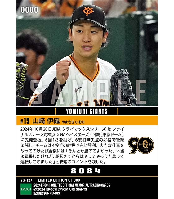 公式【山﨑伊織】CS初登板初先発初勝利「2024 JERA クライマックスシリーズ セ」(24.10.20) のカードを買うならエポックワン!税込・送料無料!