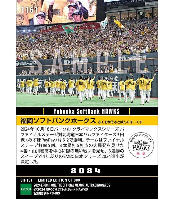 公式【福岡ソフトバンクホークス】4年ぶりのSMBC日本シリーズ2024進出決定「2024 パーソル クライマックスシリーズ パ」(24.10.18) のカードを買うならエポックワン!税込・送料無料!