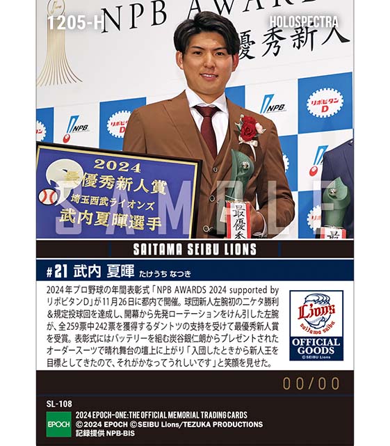 公式※ホロスペクトラ RC【武内夏暉】最優秀新人賞「NPB AWARDS 2023 supported by リポビタンD」(24.11.26) のカードを買うならエポックワン!税込・送料無料!