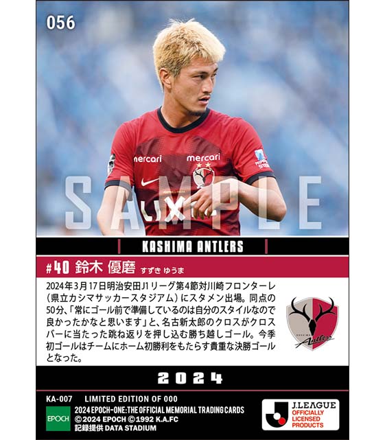 公式【鈴木優磨】リーグ戦ホーム初勝利をもたらす今季初ゴール(24.3.17) のカードを買うならエポックワン!税込・送料無料!