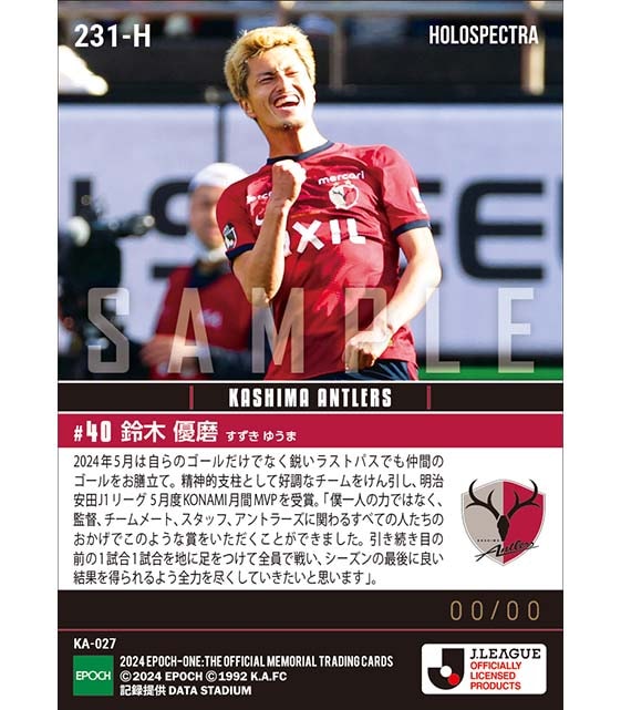 公式※ホロスペクトラ【鈴木優磨】明治安田Jリーグ KONAMI月間MVP 5月度(24.6.11) のカードを買うならエポックワン!税込・送料無料!