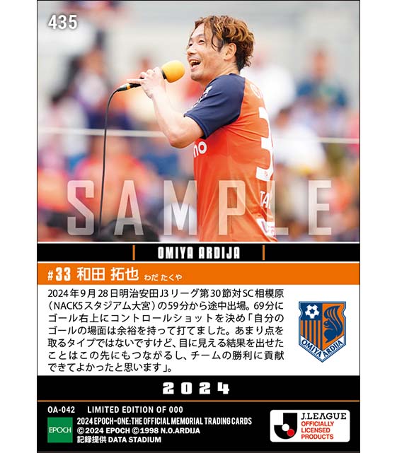 公式【和田拓也】勝利を引き寄せるアルディージャ復帰後初ゴール(24.9.28) のカードを買うならエポックワン!税込・送料無料!