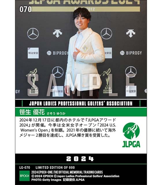 公式【笹生優花】JLPGAアワード2024 JLPGA輝き賞(24.12.17) のカードを買うならエポックワン!税込・送料無料!