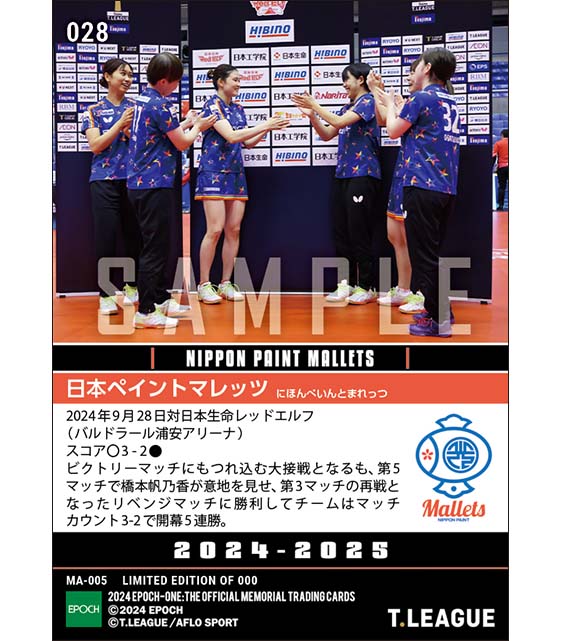 公式【日本ペイントマレッツ】開幕5連勝(24.9.28) のカードを買うならエポックワン!税込・送料無料!