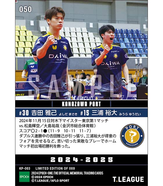公式【三浦裕大/吉田雅己】三浦裕大がホームマッチ初出場初勝利(24.11.15) のカードを買うならエポックワン!税込・送料無料!