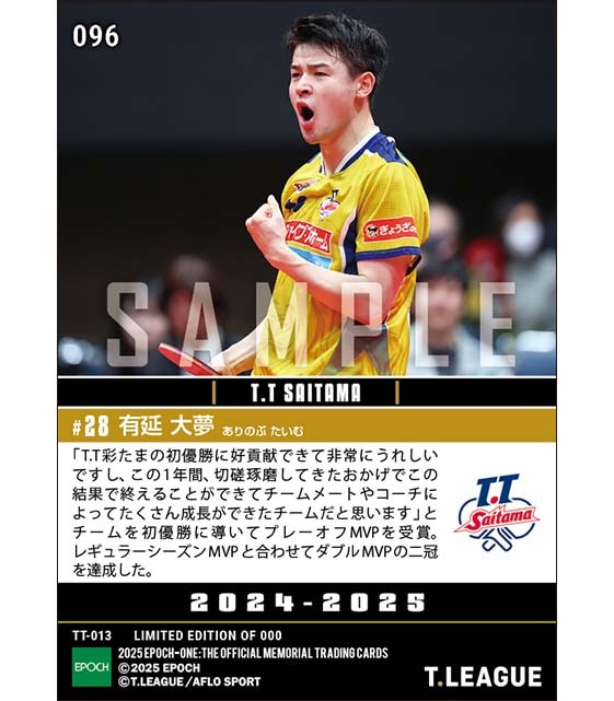 公式【有延大夢】2024-2025シーズン プレーオフMVP(25.3.23) のカードを買うならエポックワン!税込・送料無料!