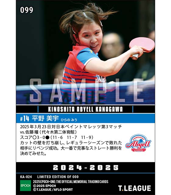 公式【平野美宇】大一番で強さを発揮してリベンジに成功(25.3.23) のカードを買うならエポックワン!税込・送料無料!