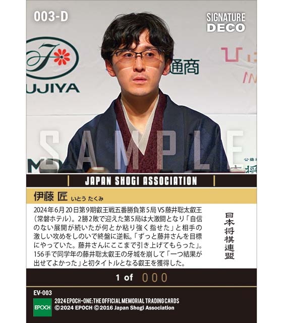 公式※SignatureDECO 【伊藤 匠】絶対王者の牙城を崩し、初タイトル「叡王」獲得(24.6.20)-対局- のカードを買うならエポックワン!税込・送料無料!