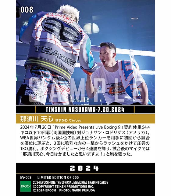 公式【那須川天心】世界上位ランカー相手に圧巻のTKO勝利(24.7.20)『B』 のカードを買うならエポックワン!税込・送料無料!