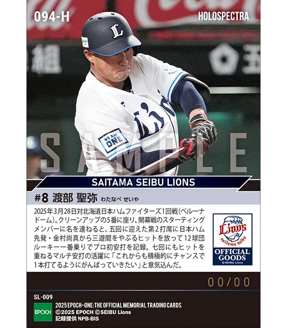公式※ホロスペクトラ RC【渡部聖弥】プロ初安打含むマルチ安打(25.3.28) のカードを買うならエポックワン!税込・送料無料!