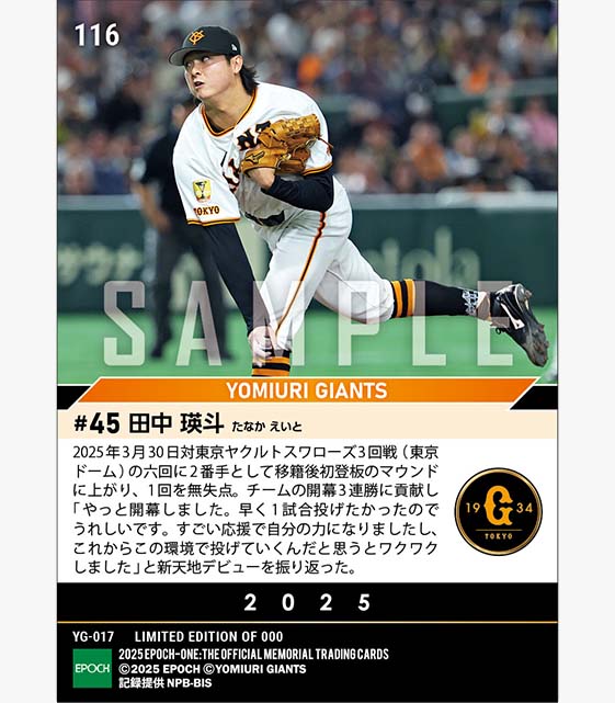 公式【田中瑛斗】移籍後初登板プロ初ホールド(25.3.30) のカードを買うならエポックワン!税込・送料無料!