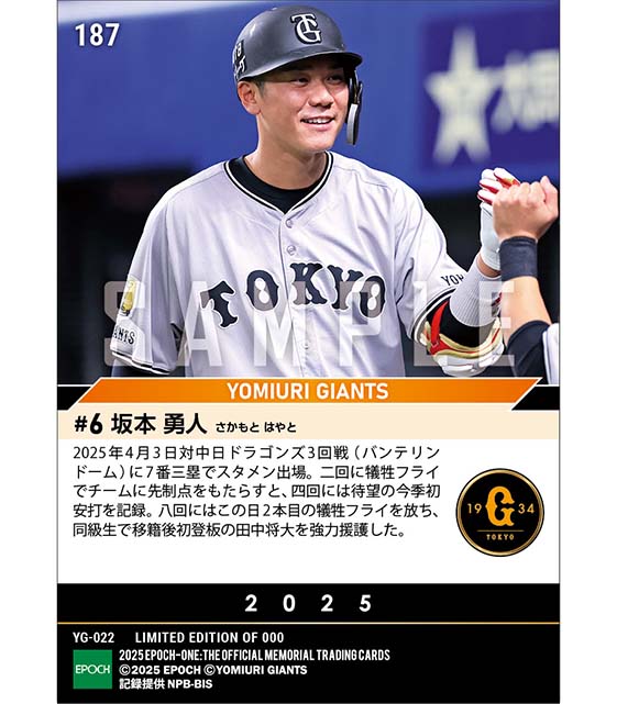 公式【坂本勇人】盟友を援護する決勝犠飛(25.4.3) のカードを買うならエポックワン!税込・送料無料!