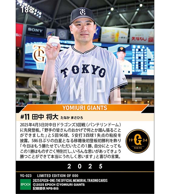 公式【田中将大】移籍後初登板初勝利(25.4.3) のカードを買うならエポックワン!税込・送料無料!