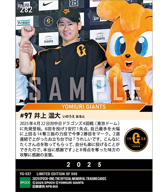 公式【井上温大】自己最多14奪三振の力投で今季2勝目(25.4.22) のカードを買うならエポックワン!税込・送料無料!