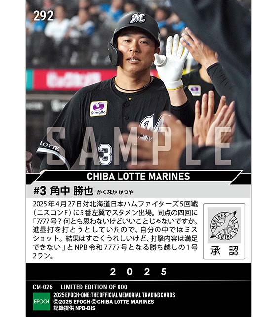 公式【角中勝也】NPB令和通算7777号となる決勝弾(25.4.27) のカードを買うならエポックワン!税込・送料無料!