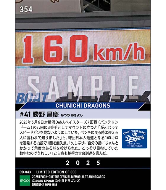 公式【勝野昌慶】球団日本人最速160キロ連発(25.5.6) のカードを買うならエポックワン!税込・送料無料!