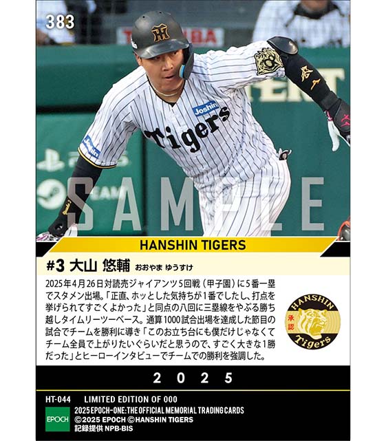 公式【大山悠輔】通算1000試合出場(25.4.26) のカードを買うならエポックワン!税込・送料無料!