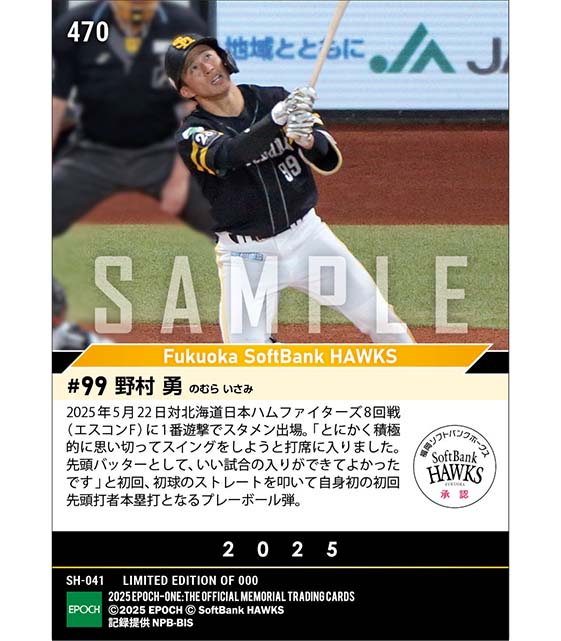 公式【野村 勇】自身初のプレーボール弾(25.5.22) のカードを買うならエポックワン!税込・送料無料!