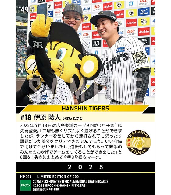 公式RC【伊原陵人】冷静沈着に今季3勝目(25.5.18) のカードを買うならエポックワン!税込・送料無料!