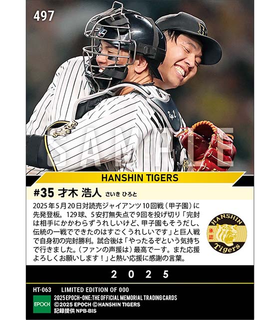 公式【才木浩人】伝統の一戦で今季初完封勝利(25.5.20) のカードを買うならエポックワン!税込・送料無料!