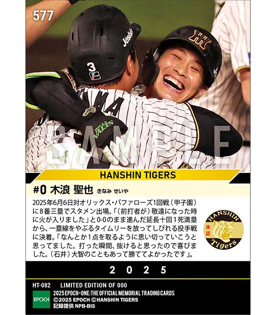 公式【木浪聖也】延長十回劇的サヨナラタイムリー(25.6.6) のカードを買うならエポックワン!税込・送料無料!